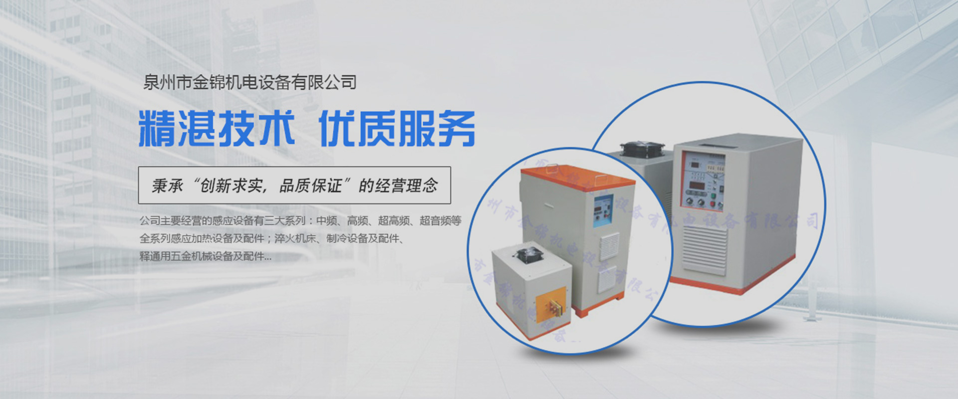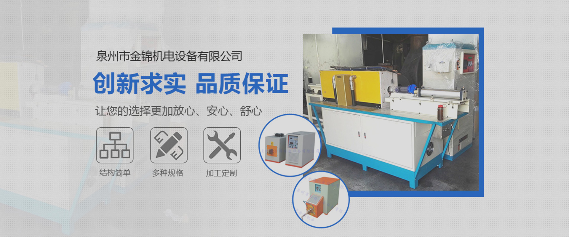 ??泉州市金錦機(jī)電設(shè)備有限公司,是一家專業(yè)生產(chǎn)銷售感應(yīng)加熱設(shè)備與優(yōu)化解決方案的高新技術(shù)企業(yè)。公司自2006年成立以來(lái),以精湛的技術(shù)、優(yōu)質(zhì)的服務(wù)、優(yōu)良的產(chǎn)品贏得了廣大用戶的認(rèn)可和信賴。產(chǎn)品銷售于全國(guó)各地。公司一貫堅(jiān)持“立足本職,敢于承擔(dān)”的工作作風(fēng),秉承“創(chuàng)新求實(shí),品質(zhì)保證”的經(jīng)營(yíng)理念,在感應(yīng)加熱行業(yè)中不斷發(fā)光發(fā)熱…